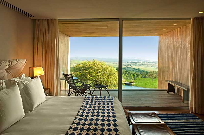 Seguindo o mesmo conceito de contem-poraneidade dos demais hotéis do grupo, o projeto leva assinatura do renomado arquiteto brasileiro Isay Weinfeld. Os quartos, com linhas modernas e limpas, oferecem vistas panorâmicas, com todo o charme de um resort campestre e o conforto de um Hotel Fasano.