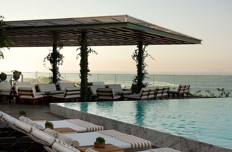 O primeiro projeto de Philippe Starck no Brasil faz do Hotel Fasano Rio de Janeiro o endereço mais fascinante da orla de Ipanema. Entre os atrativos está a piscina de borda infinita que se debruça sobre a praia, tendo como cenário o Arpoador, o Morro dois irmãos e o Corcovado. O projeto reverencia o espírito da arquitetura e do design brasileiro dos anos 1950 e 1960 e homenageia a gloriosa época da Bossa Nova.