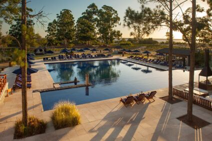 Localizado na cidade uruguaia de Carmelo,  às margens do Rio de La Plata, o Carmelo Resort & Spa é um retiro ideal para fugir de uma vida estressante. O projeto tem inspiração asiática com acomodações decoradas com muito bom gosto e cercadas por amplos terraços. Reúne requinte e conforto, além de ótimos restaurantes, um maravilhoso spa e um campo de golfe completo.