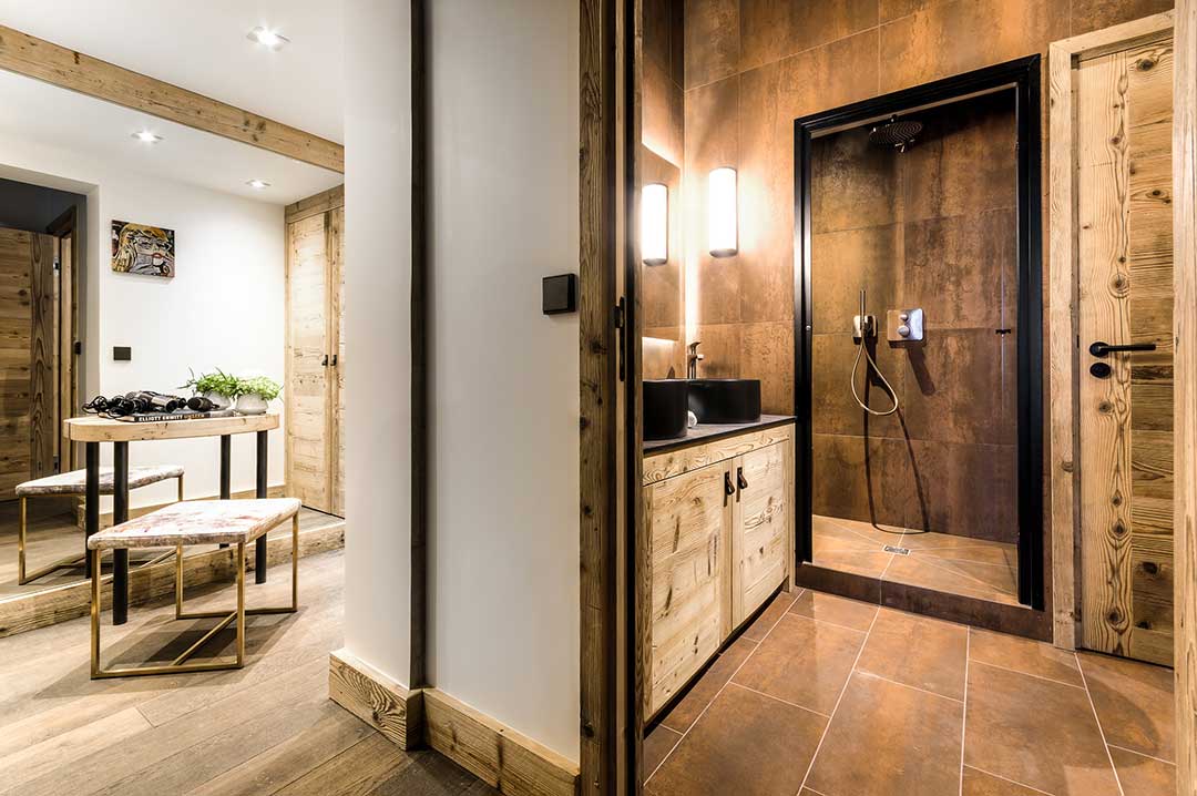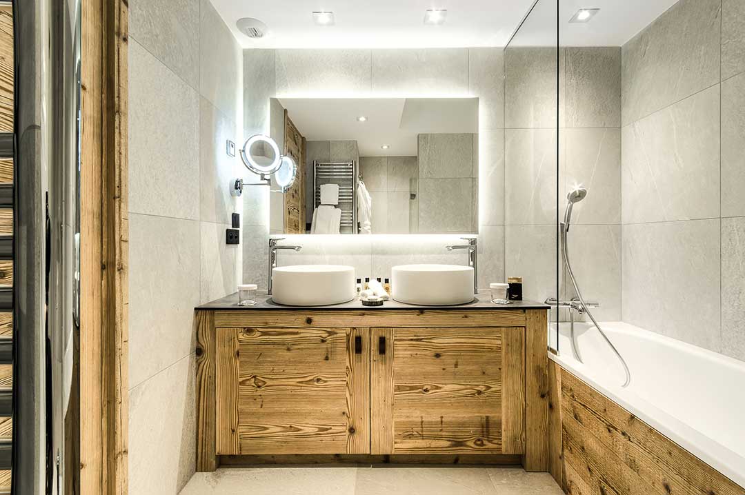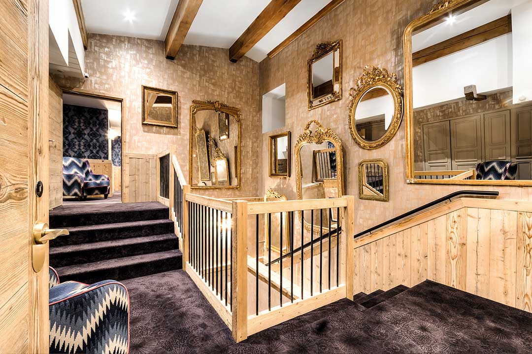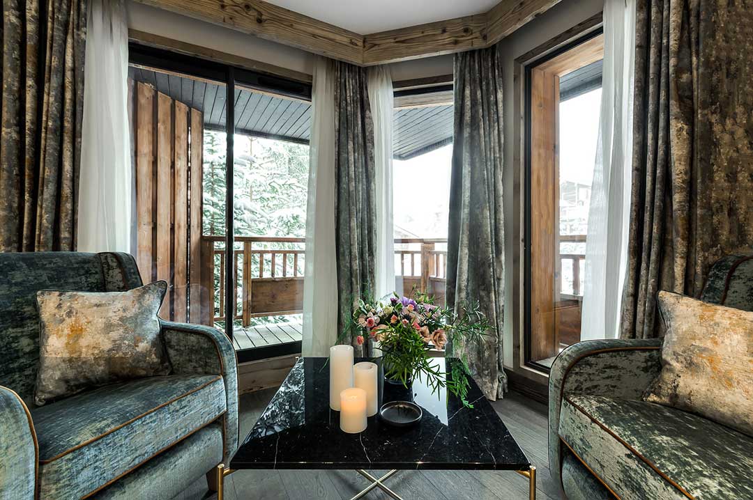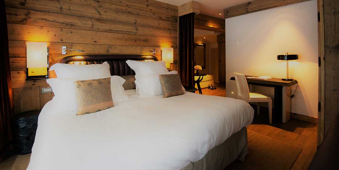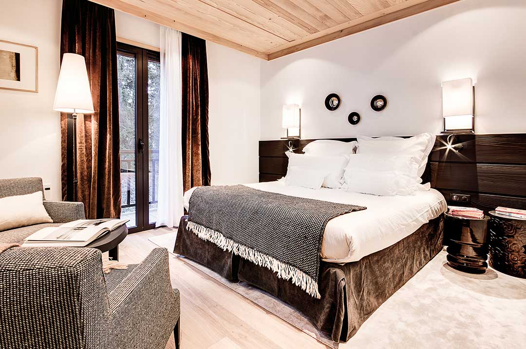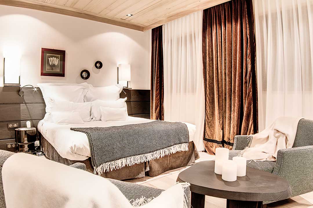 Tristan Auer, arquiteto de interiores e designer, esforçou-se para respeitar a tradição Savoyard nos 24 quartos, 11 suítes e 1 apartamento. Ele manteve principalmente, as madeiras antigas e o calor das instalações, utilizando, de modo discreto, um mobiliário contemporâneo. O ecletismo das cores e dos materiais faz com que os hóspedes mergulhem em um ambiente harmonioso, refinado e em sintonia com a natureza, com vistas deslumbrantes das pistas, da floresta e da cidade de Courchevel 1850. Todos os quartos e suítes equipados com internet Wi-Fi, televisores de alta definição com canais internacionais a cabo, um leitor de DVD e Blu-Ray, cofre e minibar.